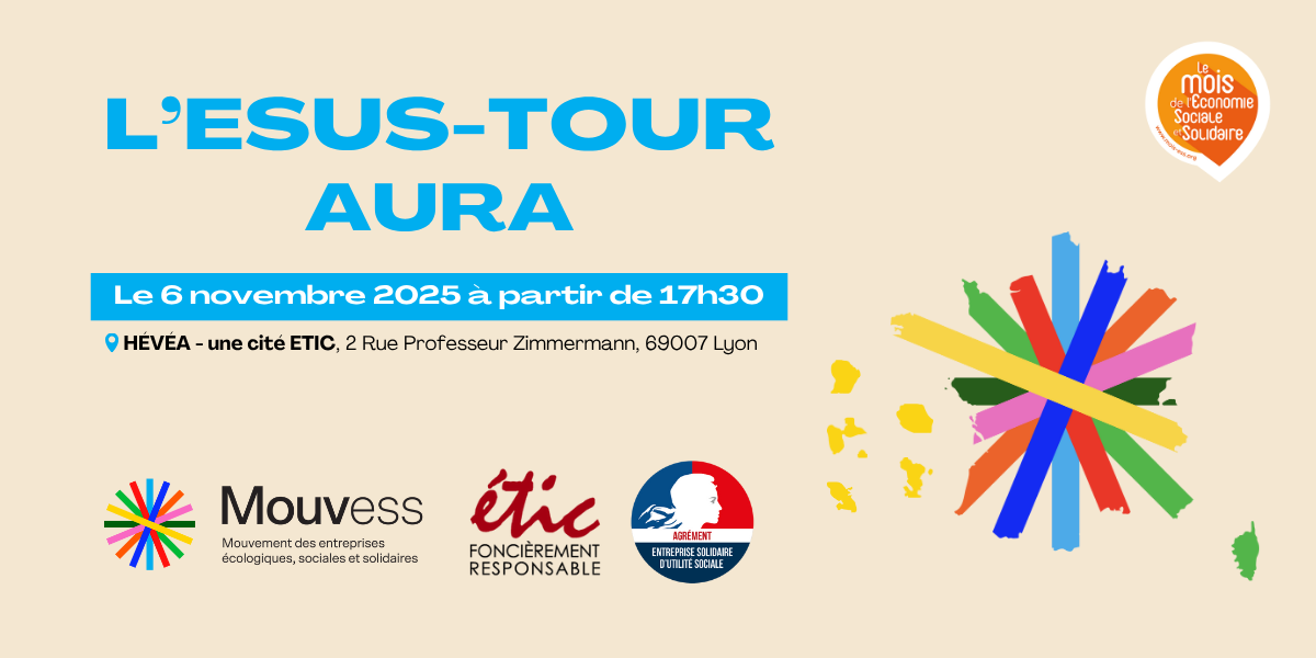 ESUS-Tour AURA : on remet ça à Lyon ! Un an après le lancement de l’ESUS-Tour à Lyon en novembre 2024, le Mouvess est ravi d’y revenir pour une nouvelle étape qui s’inscrit dans le cadre du mois de l’Économie Sociale et Solidaire (ESS). L’événement, organisé en partenariat avec la foncière ETIC, se tiendra chez… Poursuivre la lecture ESUS-Tour AURA le 6 novembre 2025 !
