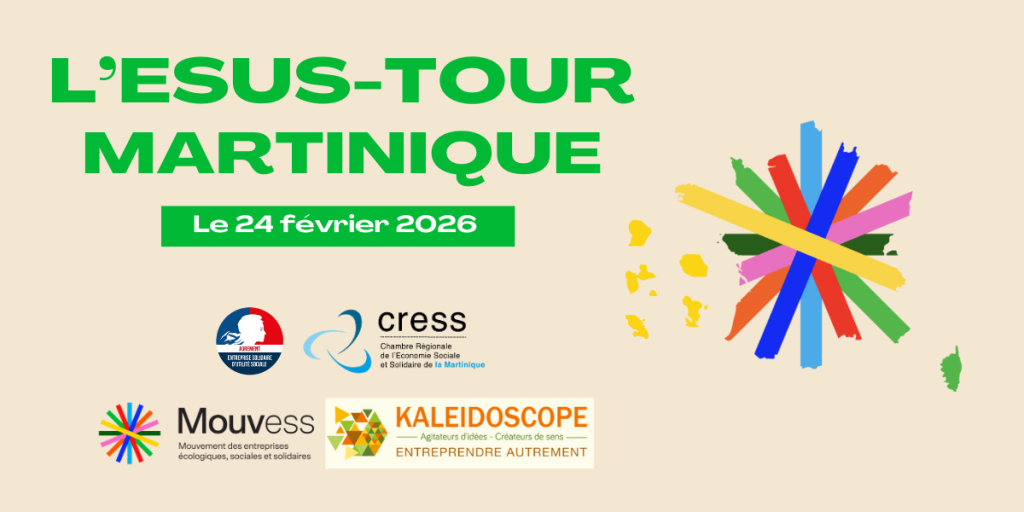 Rendez-vous le 24 février pour l’étape martiniquaise de l’ESUS-Tour organisée avec la CRESS de la Martinique, Anne Sophie Thomas (GESTIA Solidaire), et notre ambassadrice Corinne CONCY (KALEIDOSCOPE DOM).